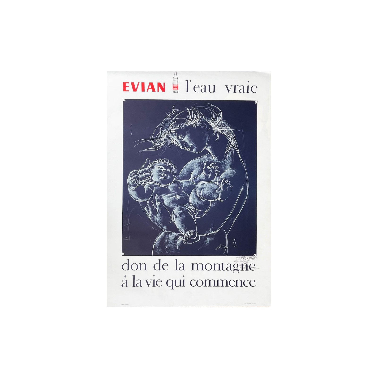 | Text | Evian, l'eau vraie, don de la montagne à la vie qui commence. |