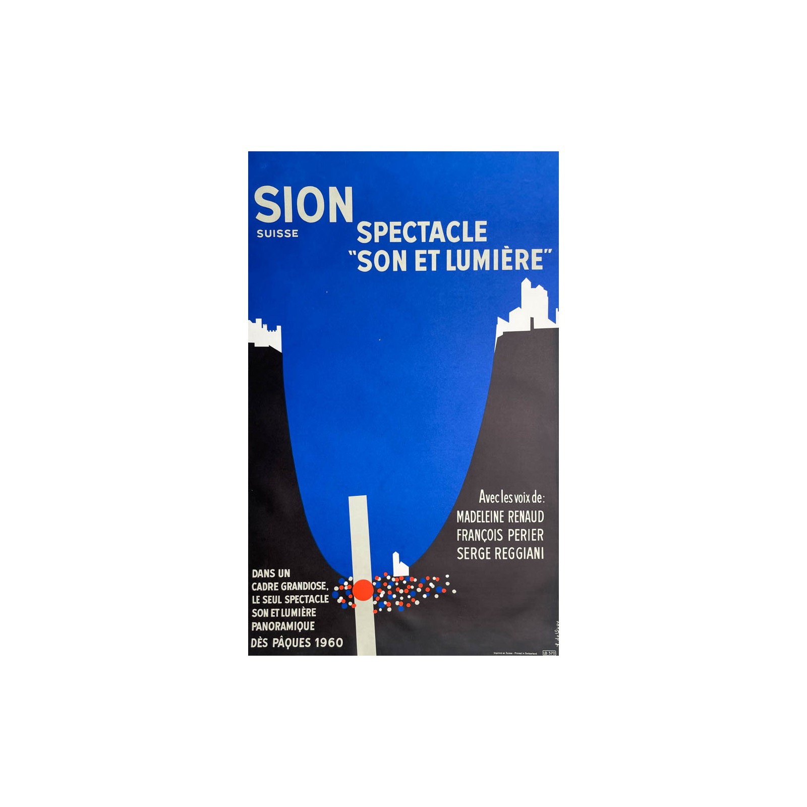 | Texte | Sion, Suisse. Spectacle "Son et lumière". Avec les voix de Madeleine Renaud, François Périer, Serge Reggiani. Dans un cadre grandiose, le seul spectacle son et lumière panoramique. Dès Pâques 1960. |